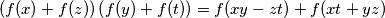 Find all functions $f$ from the reals to the reals such that $$\left(f(x)+f(z)\right)\left(f(y)+f(t)\right)=f(xy-zt)+f(xt+yz)$$ for all real $x,y,z,t$.