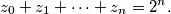 Neka su z_0,z_1,\dots, z_n kompleksni brojevi za koje vrijedi (k+1)z_{k+1}-i\cdot(n-k)z_k=0,\text{ za sve }k\in{0,1,\dots, n-1}. Odredite z_0 takav da vrijedi z_0+z_1+\dots+z_n=2^n.