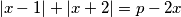U zavisnosti o realnom parametru $p$ riješiti sljedeću jednadžbu $$|x-1|+|x+2|=p-2x$$