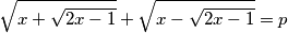 Odredite realan parametar $p$ takav da jednadžba $$\sqrt{x+\sqrt{2x-1}}+\sqrt{x-\sqrt{2x-1}}=p$$ ima jedinstveno rješenje.