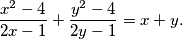 Nađite sva cjelobrojna rješenja $(x,y)$ jednadžbe \[\frac{x^2-4}{2x-1}+\frac{y^2-4}{2y-1}=x+y. \]