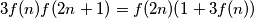 $$3f(n)f(2n+1)=f(2n)(1+3f(n))$$