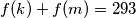Koliko uređenih parova $(k,m)$ zadovoljava jednadžbu $f(k)+f(m)=293$?