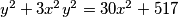 Odredi $3x^2y^2$ ako su $x$ i $y$ cijeli brojevi takvi da vrijedi $y^2 + 3x^2 y^2 = 30x^2 + 517$.