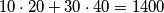 (Na primjer, ako bi skup rješenja bio $(x, y) \in \{ (10, 20), (30, 40) \}$, odgovor bi bio $10 \cdot 20 + 30 \cdot 40 = 1400$.