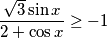 $$\frac{\sqrt{3}\sin x}{2+\cos x} \geq -1$$