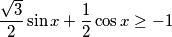 $$\frac{\sqrt{3}}{2}\sin x + \frac{1}{2}\cos x \geq -1$$