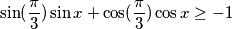 $$ \sin (\frac{\pi}{3}) \sin x + \cos (\frac{\pi}{3})\cos x \geq -1$$