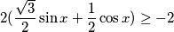 $$2 (\frac{\sqrt{3}}{2}\sin x + \frac{1}{2}\cos x) \geq -2$$