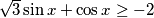 $$\sqrt{3}\sin x + \cos x \geq -2$$