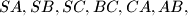 The tetrahedron $SABC$ has the following property: there exist five spheres, each tangent to the edges $SA, SB, SC, BC, CA, AB,$ or to their extensions.