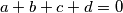 Brojevi $a$, $b$, $c$, $d$ zadovoljavaju relaciju $a+b+c+d=0$. Neka je $S_1=ab+bc+cd$ i $S_2=ac+ad+bd$. Pokažite da je $$5S_1+8S_2 \leqslant 0 \qquad \text{i} \qquad 8S_1+5S_2 \leqslant 0 \text{.}$$