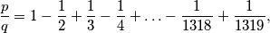 If $p$ and $q$ are natural numbers so that $$\frac{p}{q}=1-\frac{1}{2}+\frac{1}{3}-\frac{1}{4}+ \ldots -\frac{1}{1318}+\frac{1}{1319},$$ prove that $p$ is divisible with $1979$.