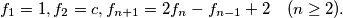 $$f_1 = 1, f_2 = c, f_{n+1} = 2f_n - f_{n-1} + 2 \quad (n \geq 2).$$