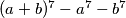 Find one pair of positive integers $a,b$ such that $ab(a+b)$ is not divisible by $7$, but $(a+b)^7-a^7-b^7$ is divisible by $7^7$.