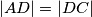 b) $\left\vert AD \right\vert = \left\vert DC \right\vert$