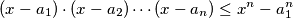 $$(x - a_1) \cdot (x - a_2) \cdots (x - a_n) \leq x^n - a^n_1$$ for all $x > a_1.$
