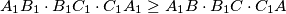 $A_1B_1 \cdot B_1C_1 \cdot C_1A_1 \ge A_1B \cdot B_1C \cdot C_1A$.
