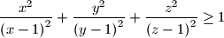$$\frac {x^{2}}{\left(x - 1\right)^{2}} + \frac {y^{2}}{\left(y - 1\right)^{2}} + \frac {z^{2}}{\left(z - 1\right)^{2}} \geq 1$$.