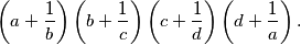 Let $a,b,c,d$ be real numbers which satisfy $\frac{1}{2}\leq a,b,c,d\leq 2$ and $abcd=1$. Find the maximum value of $$\left(a+\frac{1}{b}\right)\left(b+\frac{1}{c}\right)\left(c+\frac{1}{d}\right)\left(d+\frac{1}{a}\right)\text{.}$$