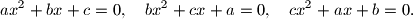 a x^2 + b x + c= 0, \quad b x^2 + c x + a= 0, \quad c x^2 + a x +
