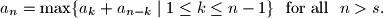 $$a_n = \max \{ a_k + a_{n-k} \mid 1 \leq k \leq n-1 \} \ \textrm{ for all } \ n > s.$$