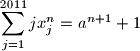 Determine all sequences $(x_1,x_2,\ldots,x_{2011})$ of positive integers, such that for every positive integer $n$ there exists an integer $a$ with $$\sum^{2011}_{j=1} j x^n_j = a^{n+1} + 1$$