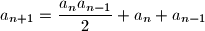 $$a_{n+1} = \frac{a_n a_{n-1}}{2} + a_n + a_{n-1}$$
