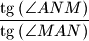Dane su tri kolinearne točke $A$, $B$ i $M$, takve da je $M$ između $A$ i $B$, te kružnica $k$ čiji je promjer $\overline{AB}$. Neka je $N$ bilo koja točka na kružnici $k$, različita od $A$ i $B$. Dokaži da je vrijednost izraza $$\displaystyle \frac{\tg{\left(\angle ANM\right)}}{\tg{\left(\angle MAN\right)}}$$ konstantna, tj. da ne ovisi o odabiru točke $N$.