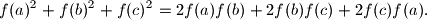 $$f(a)^2+f(b)^2+f(c)^2=2f(a)f(b)+2f(b)f(c)+2f(c)f(a).$$
