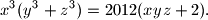 %V0 Find all triples $(x,y,z)$ of positive integers such that $x \leq y \leq z$ and $$x^3(y^3+z^3)=2012(xyz+2).$$