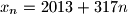 [i]Palindrom[/i] je niz znakova koji se jednako čita s lijeva na desno i s desna na lijevo. Dokaži da se u beskonačnom nizu $ (x_n)_{n=0}^{\infty}$ definiranom sa $$