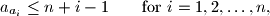 a_{a_i} \leq n + i - 1 \quad \quad \text{for}\ i = 1, 2, \ldots, n \text{,}