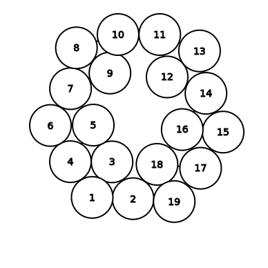 U ravnini je dano $n$ kružnica radijusa $1$ tako da se nijedne dvije ne sijeku (kružnice se mogu dodirivati). Dokažite da je kružnice moguće obojati u $4$ boje tako da se nijedan par kružnica iste boje ne dodiruje.