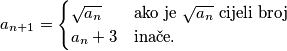 \sqrt{a_n} & \text{ako je } \sqrt{a_n} \text{ cijeli broj}\\