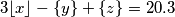 $$3\lfloor x \rfloor - \{ y \} + \{ z \} = 20.3$$