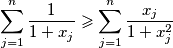 Prove the inequality $$\sum_{j = 1}^{n} \frac{1}{1+x_j} \geqslant \sum_{j = 1}^{n} \frac{x_j}{1+x_j^2}$$ and determine when equality holds.