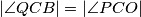 Prove that $|\angle{QCB}| = |\angle{PCO}|$.