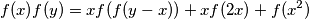 $$f(x)f(y) = xf(f(y-x)) + xf(2x) + f(x^2)$$
