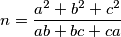 $$n = \frac{a^2+b^2+c^2}{ab+bc+ca}$$