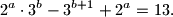 2^a \cdot 3^b-3^{b+1}+2^a=13 \text{.}