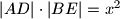 U pravokutni trokut $ABC$ s duljinom hipotenuze $c$ i pripadnom visinom $h$ upisan je kvadrat $DEFG$ sa dva susjedna vrha $D$, $E$ na hipotenuzi $\overline{AB}$ i po jednim vrhom $F$ i $G$ na katetama $\overline{BC}$ i $\overline{CA}$. Izračunajte duljinu $x$ stranice tog kvadrata i dokažite jednakost $\left\vert AD \right\vert \cdot \left\vert BE \right\vert = x^2$.