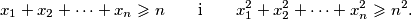 x_{1}^{2} + x_{2}^{2} + \cdots + x_{n}^{2} \geqslant n^{2}
