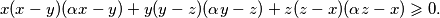 \[ x(x - y)(\alpha x - y) + y(y - z)(\alpha y - z) + z(z - x)(\alpha z - x) \geqslant 0. \]