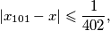 \[ |x_{101} - x|\leqslant\frac{1}{402} \text, \]