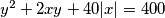 Skup svih točaka $(x,y)$ za koje vrijedi $y^2+2xy+40|x|=400$ dijeli